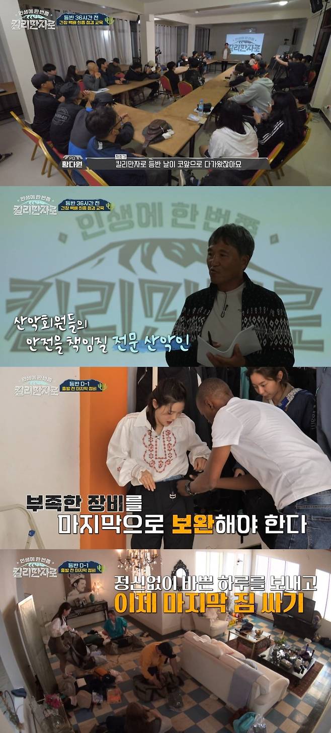 이날 멤버들은 킬리만자로 등반 36시간 전, 최종 점검 교육을 받았다. 출연자 4명 뿐만 아니라 스태프 31명까지 모두 참석해 진지한 자리를 가졌다. 전문 산악인 진재창, 의료 스태프 윤찬웅, 탄자니아 전문 가이드 제이 등이 자리해 킬리만자로 등반 주의사항, 고산병 등에 대해 이야기했다.