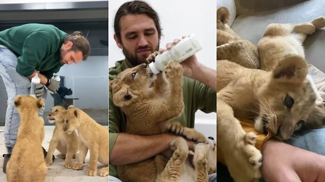 그는 고양잇과 동물을 케어한 경험을 바탕으로 새끼들이 안전하게 보호구역에 도착할 때까지 전쟁 통에도 3시간마다 맞춤형 분유를 준비하고, 정전된 날에는 팔다리의 온기로 우유병을 데우는 등 정성껏 돌봤습니다.