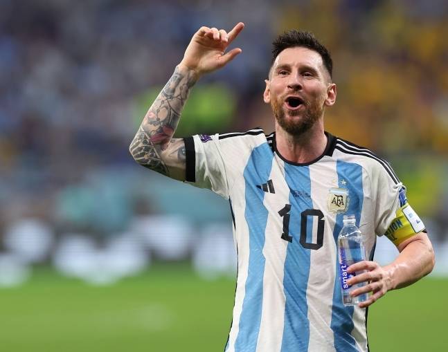 [ 아르헨티나의 리오넬 메시가 한국시간 4일 카타르 알라이얀 아흐마드 빈 알리 스타디움에서 열린 2022 카타르 월드컵 16강전 아르헨티나와 호주의 경기에서 2대1로 승리한 뒤 기뻐하고 있다. (사진=연합뉴스)]