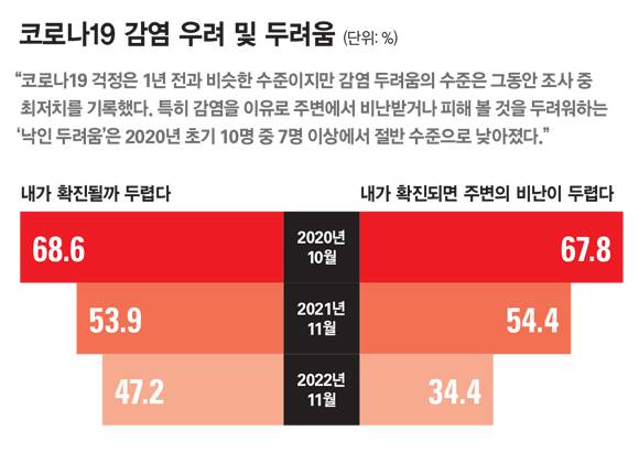 코로나19 두려움, 국민 10명 중 4.7명으로 최저…방역 당국의 소통 ‘유익’ 28%로 최저