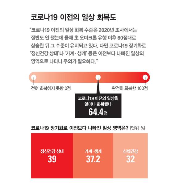 코로나19 이전의 일상 회복 수준 ‘64점’