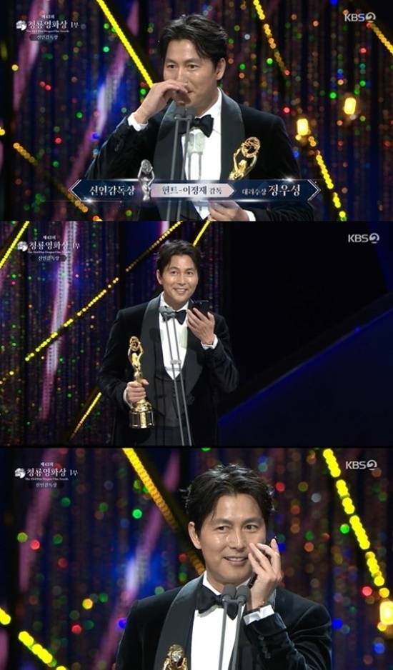 수상 후 정우성은 "'김정도는 정우성 아니면 쓸 수도, 그릴 수도 없다'고 떼쓰면서 매달린 신인 감독의 선구안은 인정하고 싶다. 저같이 좋은 배우와 함께한 훌륭한 스태프들이 있었기 때문에 (이정재 감독이) 신인감독상도 받았다. 신인 감독 이정재에게 감사받고 싶다"고 재치 있는 소감을 남겨 주목받기도 했습니다.