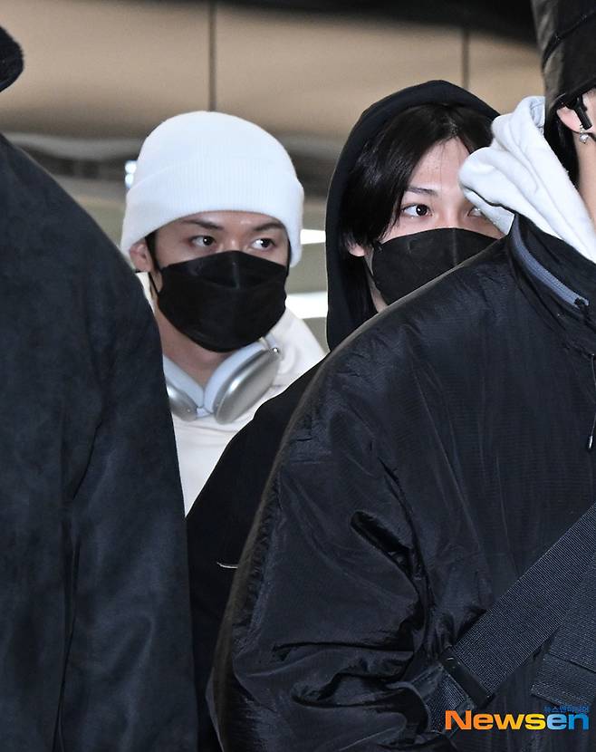 그룹 스트레이키즈가 12월 4일 오후 해외 일정을 마치고 서울 강서구 김포국제공항으로 입국하고 있다.