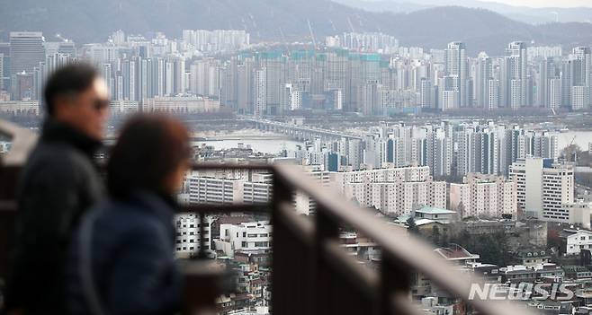 [서울=뉴시스] 김진아 기자 = 4일 KB국민은행 자료에 따르면 지난달 서울의 KB아파트 월세지수(전용면적 95.86m² 이하 아파트 대상)는 105.4로 전달대비 0.6포인트(p) 상승, 통계가 작성된 이래 최고치를 기록했다. 사진은 이날 서울 남산타워에서 바라본 아파트단지 모습. 2022.12.04. bluesoda@newsis.com