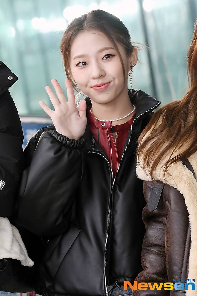 아이칠린(ICHILLIN') 멤버 지윤, 초원, 주니, 이지, 예주, 채린, 재키가 12월 4일 오후 서울 강서구 방화동 김포국제공항 국내선을 통해 제주월드컵경기장 야외 특설무대에서 진행되는 2022 K-POP in JEJU 일정 참석 차 제주도로 출발하고 있다.