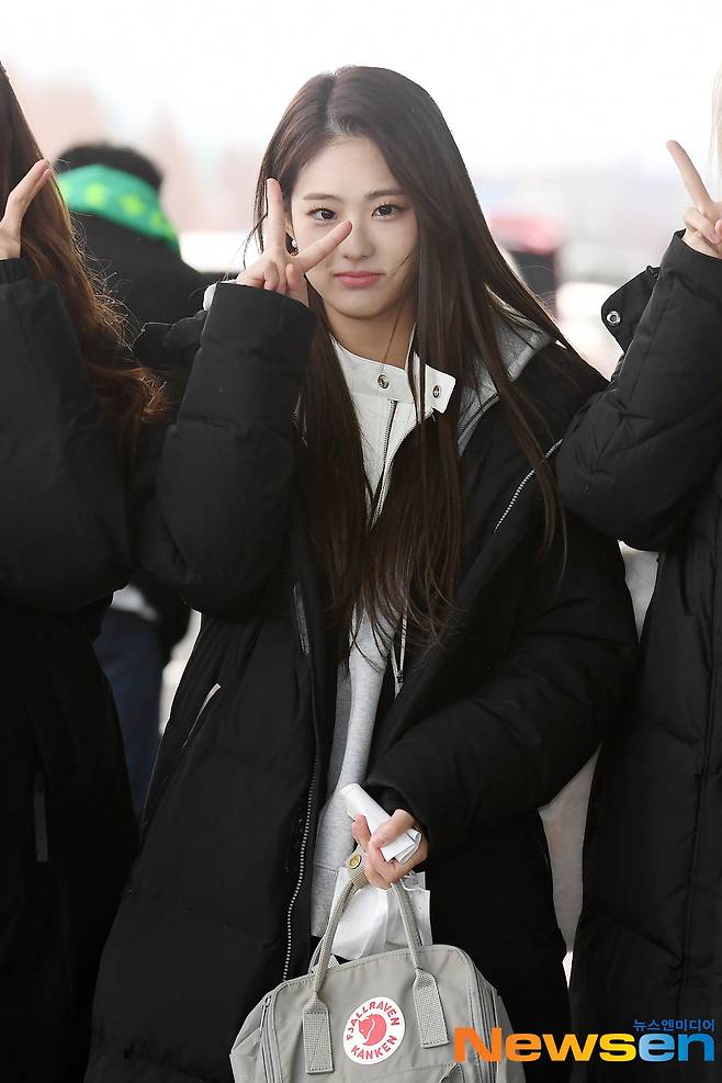 아이칠린(ICHILLIN') 멤버 지윤, 초원, 주니, 이지, 예주, 채린, 재키가 12월 4일 오후 서울 강서구 방화동 김포국제공항 국내선을 통해 제주월드컵경기장 야외 특설무대에서 진행되는 2022 K-POP in JEJU 일정 참석 차 제주도로 출발하고 있다.