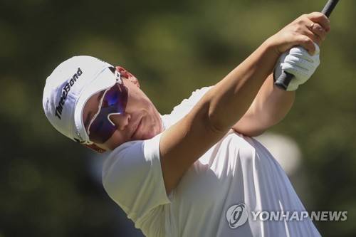 Korea's Jiyai Shin tees off on the second hole during the Australian Open golf championship at Victoria golf course in Melbourne, Australia, Sunday, Dec. 4, 2022. (AP Photo/Asanka Brendon Ratnayake)