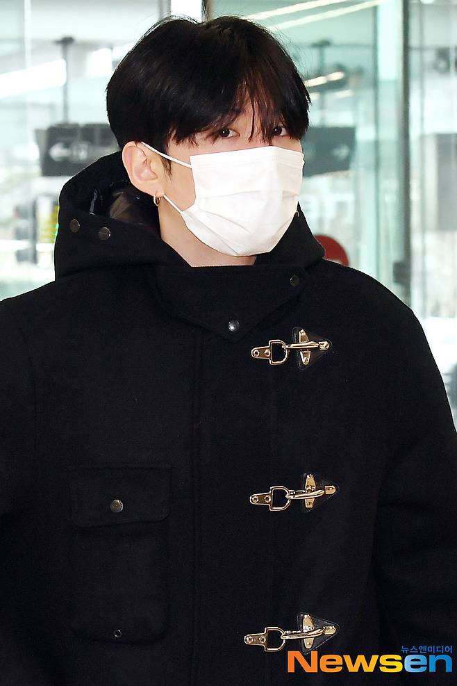 몬스타엑스(MONSTA X) 멤버 민혁, 기현, 형원, 주헌, 아이엠이 12월 4일 오후 서울 강서구 방화동 김포국제공항 국내선을 통해 제주월드컵경기장 야외 특설무대에서 진행되는 2022 K-POP in JEJU 일정 참석 차 제주도로 출발하고 있다.
