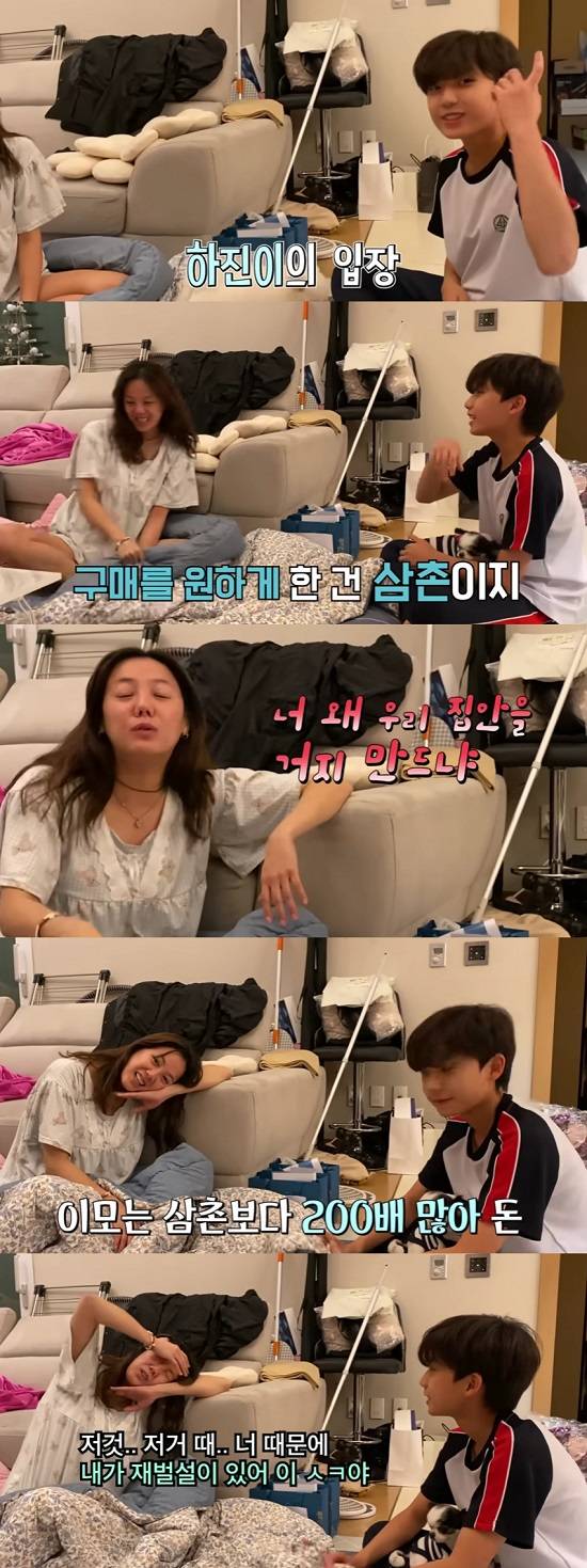미르와 고은아의 대화에 조카는 "얘기할 게 있다. 이 영상이 나오는 이유이기도 하잖아. 내 옷때문에"라며 "옷 살 생각이 없었다. 근데 삼촌이 이모한테 물어보라고 했다. 구매를 원하게 한건 삼촌이다"라고 반박했다.