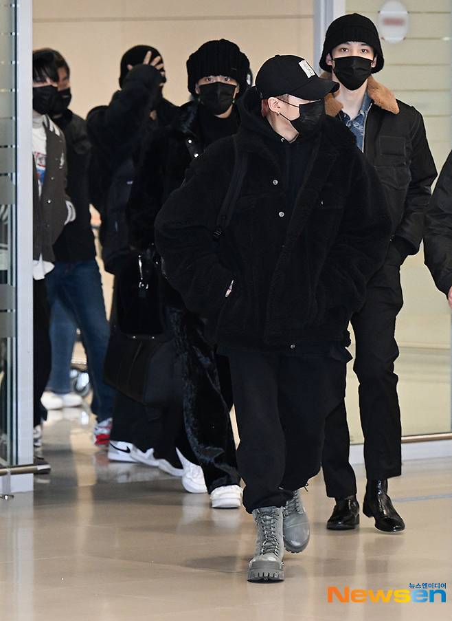 그룹 에이티즈가 12월 4일 오후 해외 일정을 마치고 인천광역시 중구 운서동 인천국제공항으로 입국하고 있다.