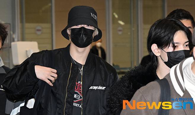 그룹 에이티즈가 12월 4일 오후 해외 일정을 마치고 인천광역시 중구 운서동 인천국제공항으로 입국하고 있다.