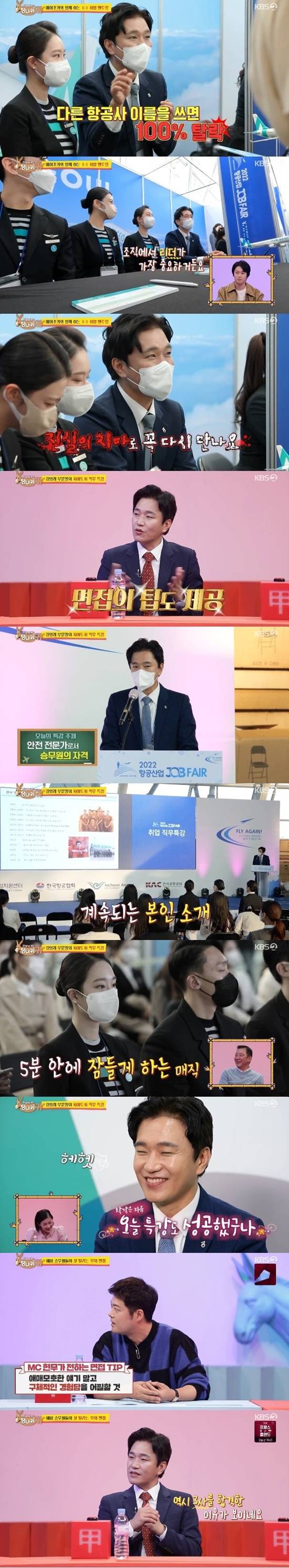 김형래 부문장의 특강이 본격적으로 시작되자 승무원들은 물론 학생들도 지루해하는 모습을 보였다. 하지만 김형래 부문장은 "오늘 아무도 안 졸았다. 눈동자가 다 똘망똘망해서 저를 봤다. '성공했구나' 이런 생각이 들었다"고 자화자찬을 해 웃음을 자아냈다.