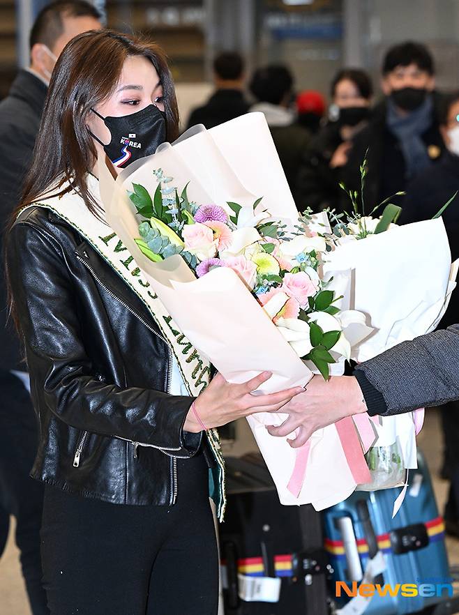 '미스 어스(Miss Earth) 2022' 우승자인 최미나수가 12월 4일 오후 인천광역시 중구 운서동 인천국제공항으로 입국하고 있다.