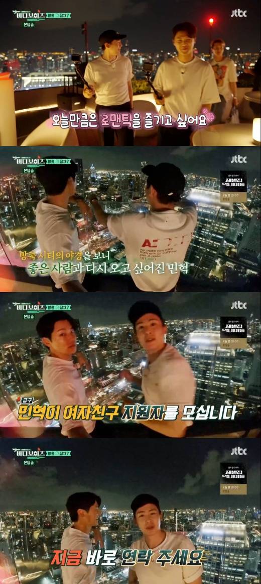 강민혁은 닉쿤과 함께 방콕의 야경을 감상하며 “여자친구가 있으면 좀 이렇게 놀러 다니고 이럴 텐데 이럴 기회가 많이 없었다”라고 털어놨다.