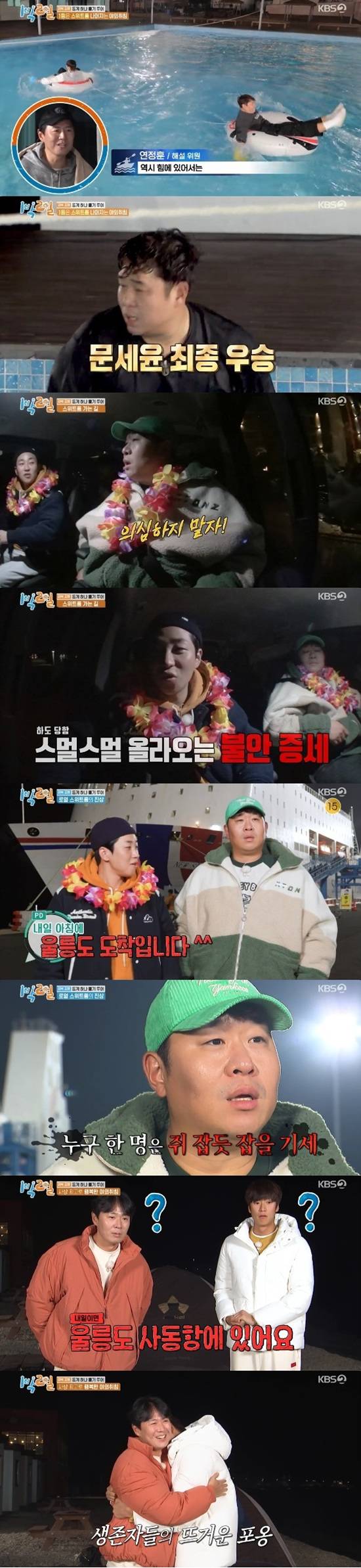 문세윤과 딘딘은 망연자실했다. 특히 게임에서 1등을 한 문세윤은 "이게 뭐하는 거야. 나 1등했는데 왜 울릉도를 가"라고 발끈했다.