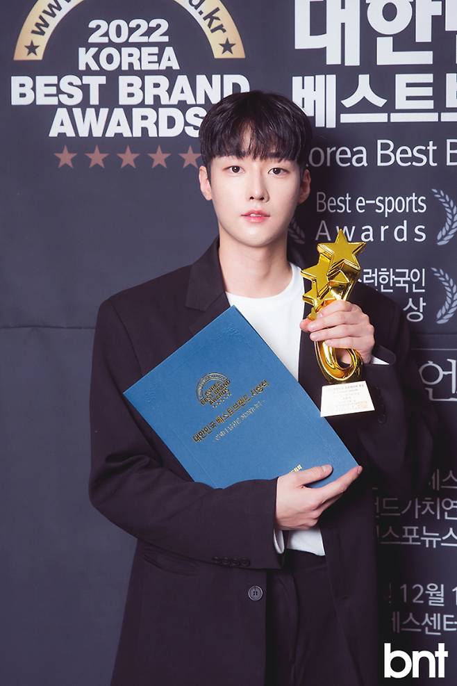 '2022 대한민국 크리에이터대상' 뷰티크리에이터 부문에 선정된 최토끼가 트로피를 들고 포토타임을 갖고 있다.
