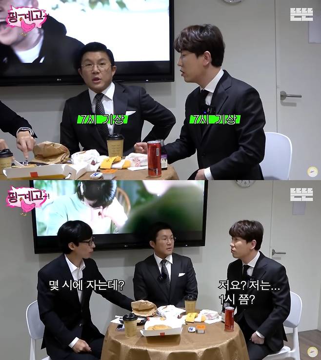 보통 아침에 몇 시에 일어나느냐는 질문에 조세호와 남창희는 모두 오전 7시에 일어난다고 말했다. 조세호는 "저희는 알람 없이 아침에 일어난다. 이제 그 정도까지 됐다"고 말했는데, 유재석은 "그 정도가 아니라 나이 먹으면 원래 그렇게 되는거야"라고 말했다.