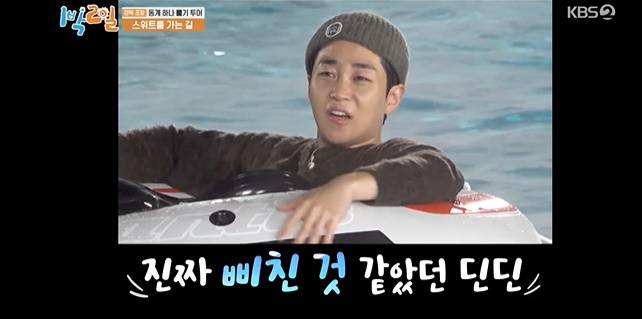 딘딘은 "근데 무거워서 (튜브가) 안 뒤집혀 내가 뒤집혀서 (물 속에 빠졌는데) 아무도 안 웃더라"면서 "그때부터 내 민심이 무너졌구나 느껴 민망하더라"고 말했다.