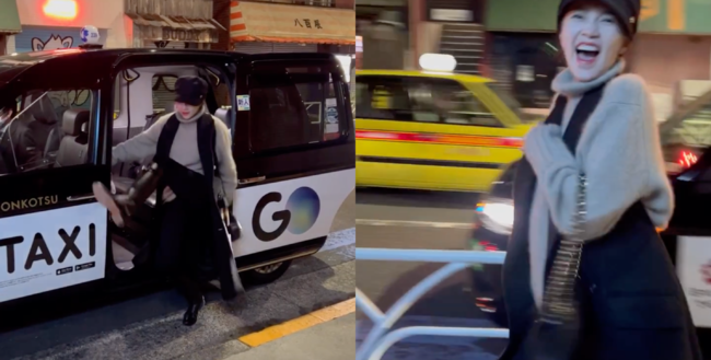 공개된 영상은 아유미가 택시에서 내리면서 포즈를 취하는 모습.