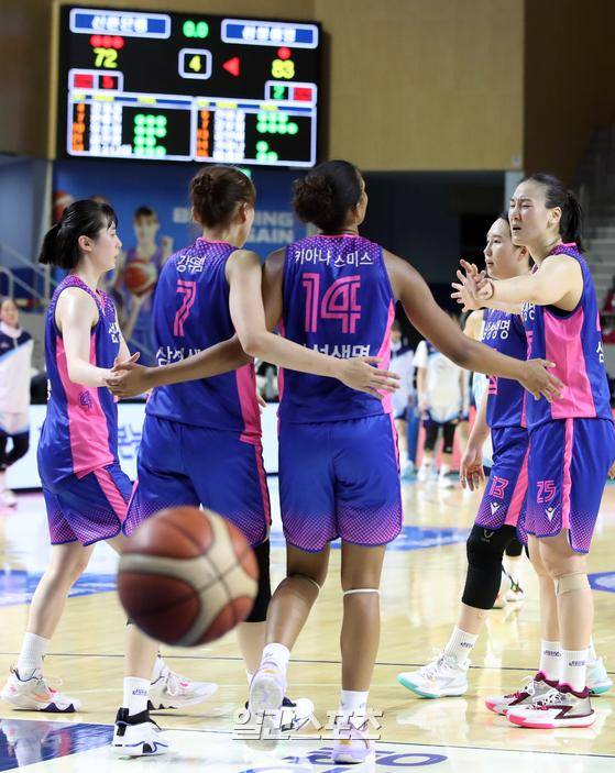 신한은행 SOL 2022~2023 여자프로농구 용인 삼성생명과 인천 신한은행이 4일 오후 용인체육관에서 맞대결을 펼쳤다. 삼성생명이 83-72로 승리했다. 경기종료후 선수들이 기뻐하고있다.