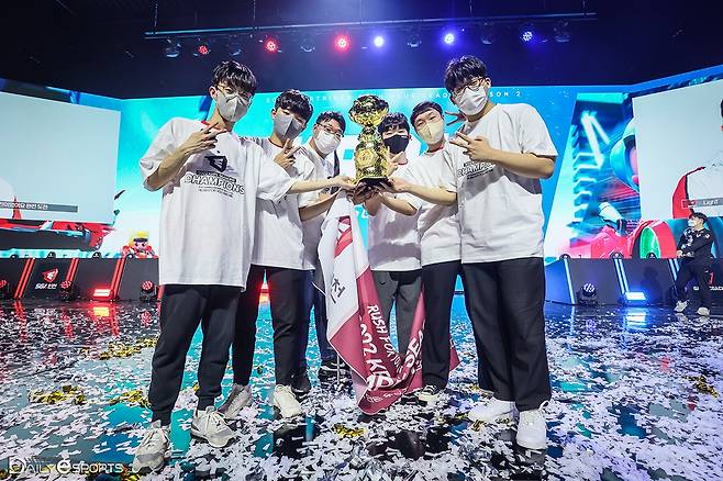2022 KRPL 시즌2 챔피언에 오른 SGA 인천이 트로피를 들었다.