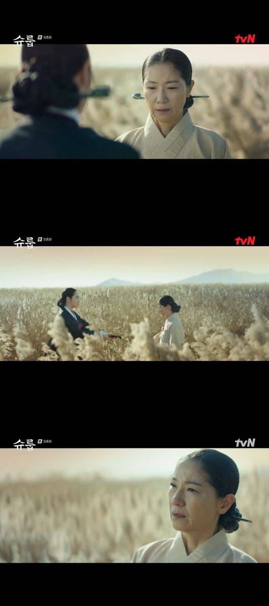 3일 tvN 토일드라마 '슈룹'(극본 박바라, 연출 김형식)에서는 죽은 권의관(이익현, 김재범 분)의 망건을 전해주고자 윤황후(서이숙 분)를 만난 화령(김혜수 분)의 모습이 그려졌다.