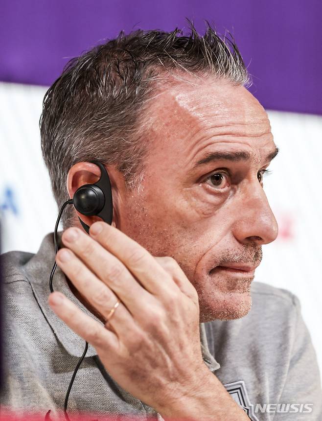[알라이얀(카타르)=뉴시스] 조성우 기자 = 대한민국 축구대표팀 파울루 벤투 감독이 4일(현지시간) 오후 카타르 알라이얀 메인미디어센터(MMC)에서 브라질과 16강전을 하루 앞두고 기자회견을 하고 있다. 2022.12.04. xconfind@newsis.com