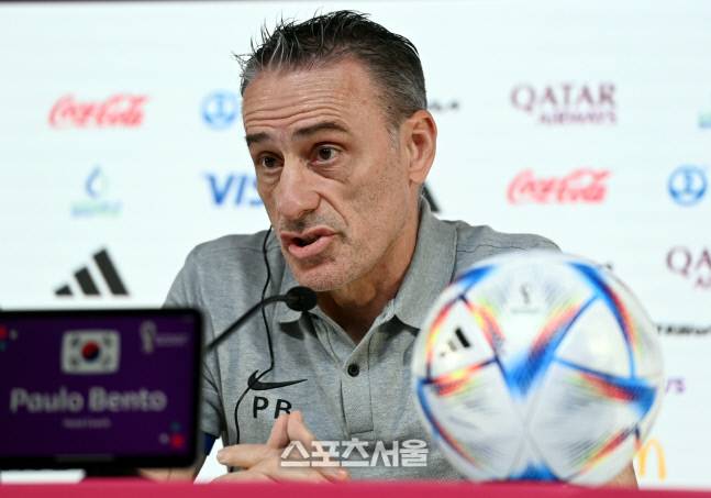 파울루 벤투 축구대표팀 감독이 4일 카타르 도하 국립컨벤션센터(QNCC)에 마련된 메인미디어센터에서 공식 기자회견을 하고 있다.