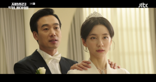 4일 방송된 JTBC 금토일드라마 ‘재벌집 막내아들’ (극본 김태희/장은재, 연출 정대윤/김상호)에서는 결혼식을 올리는 진성준(김남희 분)과 모현민(박지현 분)의 모습이 그려졌다.