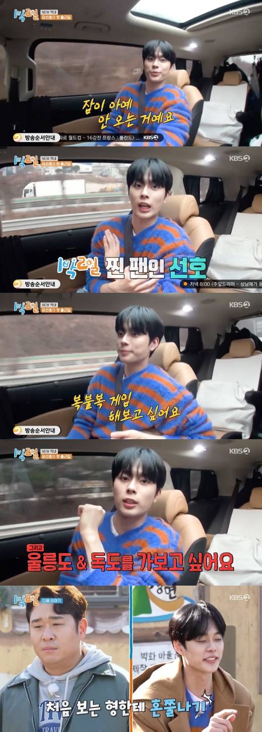 4일 오후 방송된 KBS 2TV 예능프로그램 ‘1박 2일 시즌4’에서는 새로운 멤버 유선호가 시청자에게 첫인사를 건넸다.