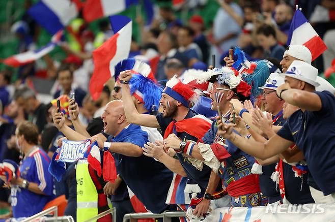 [도하(카타르)=뉴시스] 백동현 기자 = 4일(현지시간) 오후 카타르 도하 알투마마 스타디움에서 열린 2022 카타르 월드컵 16강전 프랑스와 폴란드의 경기, 킥오프 전 프랑스 축구 팬이 응원하고 있다. 2022.12.05. livertrent@newsis.com