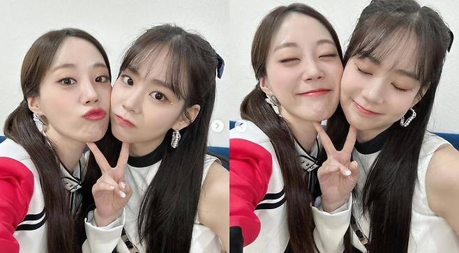 사진에는 한승연이 허영지와 볼을 맞대고 포즈를 취하고 있는 모습이 담겨있다. 여전한 요정 비주얼과 과즙미 가득한 두 사람의 다정한 투샷이 눈길을 사로잡는다.
