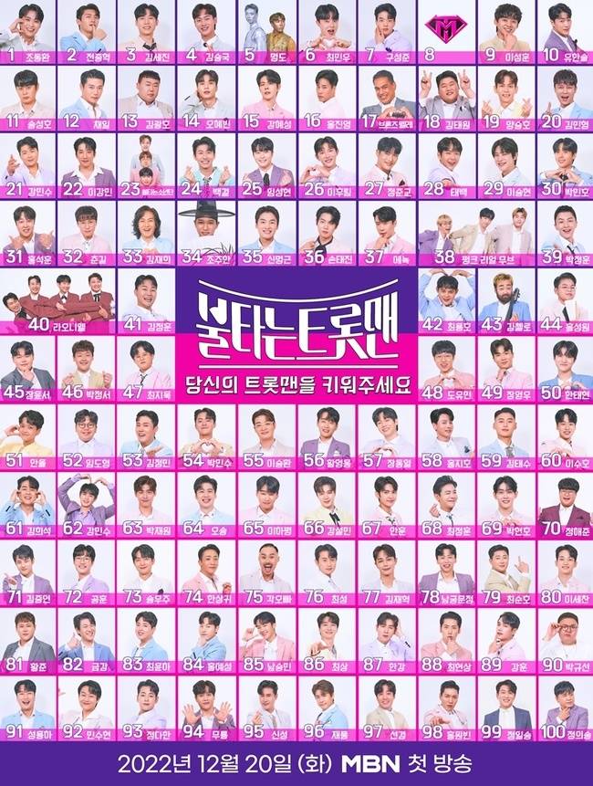 MBN '불타는 트롯맨'(이하 '불트') 측은 12월 5일 베일에 가려져 있던 100팀 참가자 공식 명단을 전격 공개했다.
