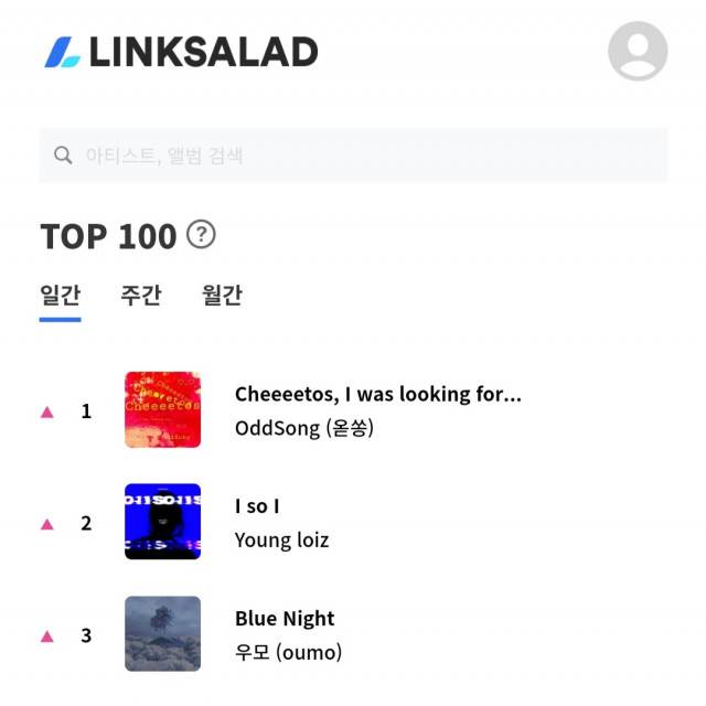 옫쏭의 정규 3집 앨범 'Cheeeetos, I was looking for'가 LINKSALAD 일간 차트 12월 5일 1위를 달성했다.