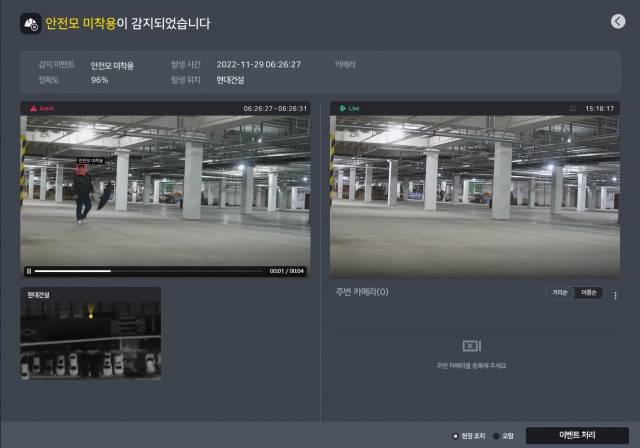 현대건설은 최근 CCTV 영상을 원격으로 연결해 최근 개발한 AI 모델을 적용하고 관제하는 성능 검증을 완료했다. 앞으로도 다양한 현장 활용 시나리오에 대한 효과성을 보완하고, 이를 국내 현장에 적용할 계획이다.