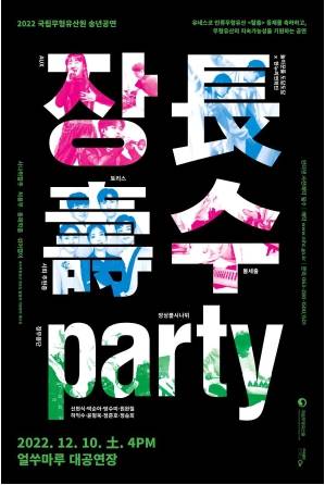 2023년 개원 10주년을 앞두고 국립무형유산원의 지속적 발전을 기원하는 의미에서 마련된 '장수長壽파티' 공연은, 무형유산을 기반으로 전통창작 공연 활동을 해온 10년 이상 장수 공연팀들이 출연해 무형유산 전통적 무대와 동시대적 가치가 공존하는 무대를 선보일 예정이다.