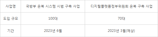 국방부에 이어 디지털플랫폼정부위원회도 온북 구축 사업을 발주했다. 내년 3월 완료를 목표로 약 70대를 도입할 예정이다. 이들 사업은 해당 기관뿐만 아니라 다른 사업 수주에도 영향을 미치는 만큼 업계의 관심이 높다. 특히 국방부는 부처 규모가 커서 앞으로 수만대의 수요가 일 뿐만 아니라 상대적으로 도입 과정이 까다로워 수주 시 신뢰성까지 확보할 수 있다.