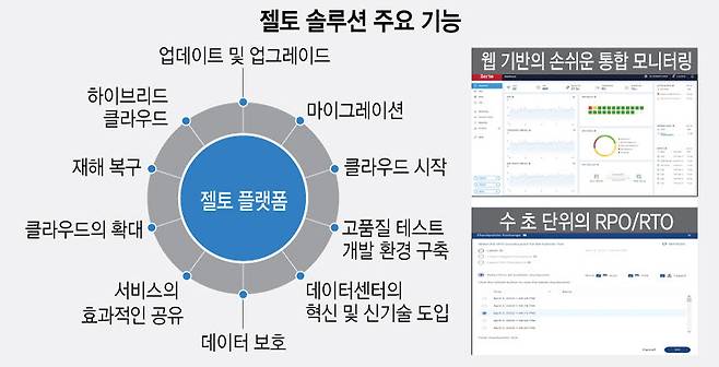 지속적 데이터 보호(CDP)를 위한 '젤토(Zerto)'도 빼놓을 수 없다. 젤토는 하이브리드 및 멀티클라우드 환경에 전개할 수 있는 재난 복구, 백업, 애플리케이션 및 데이터 모빌리티를 위한 CDP 솔루션이다.