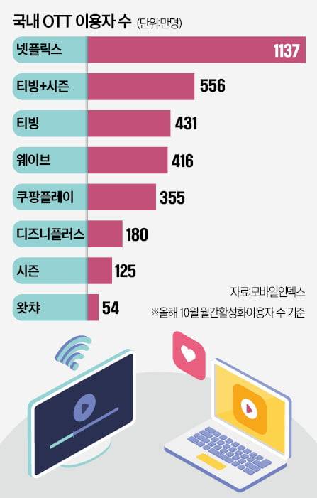 국내 온라인동영상서비스(OTT) 업계가 요동치고 있다. 급성장하던 OTT 시장이 포화 상태에 다다르면서 생존을 위해 다양한 전략을 내세우는 모습이다. CJ ENM의 티빙이 KT의 시즌을 합병해 덩치를 키웠다. 넷플릭스, 디즈니플러스 등 외국계 OTT들도 저렴한 요금제와 한국 콘텐츠로 시장 공략을 강화한다는 방침이다.
