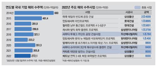 기업별로는 인도네시아에서 잭팟을 터뜨린 롯데건설과 함께 GS건설 약진이 눈에 띄었다. GS건설은 올해 3분기까지 해외에서 5억492만달러를 벌어들이며 전년 동기(1억8750만달러)에 비해 수주금액이 169% 증가했다.