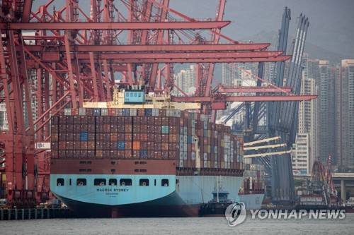 epa10349232 A container ship is berthed in the Kwai Tsing Container Terminals in Hong Kong, China, 05 December 2022. For the first nine months of 2022, total port cargo throughput decreased by 9.8 per cent compared with the first nine months of 2021 to 144.0 million tonnes according to Hong Kongs Census and Statistics Department. EPA/JEROME FAVRE