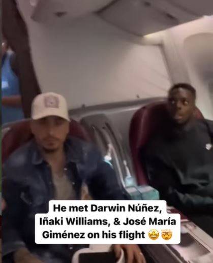 스포츠 매체 'ESPN'이 한 축구팬으로부터 제보 받은 영상에 따르면, 이 축구팬은 비행기에서 우루과이 대표 다윈 누녜스와 호세 히메네스, 가나 대표 이냐키 윌리엄스를 만났다.