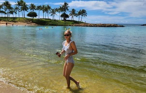 공개된 사진엔 하와이 해변에서 물놀이 중인 서효림의 모습이 담겼다. 사진 속 서효림은 가슴 부분의 프릴이 돋보이는 수영복으로 화려한 자태를 뽐냈다. 군살 없는 몸매와 8등신 비율도 돋보였다.