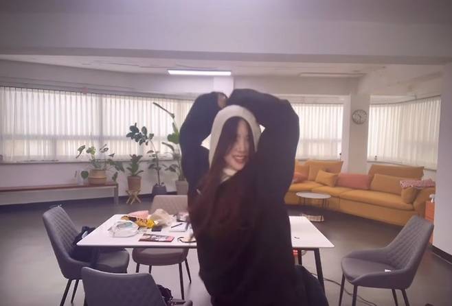 사진 속 박솔미는 후드를 뒤집어 쓴 채로 무아지경 댄스를 선보이는 것으로 유쾌한 매력을 발산했다.
