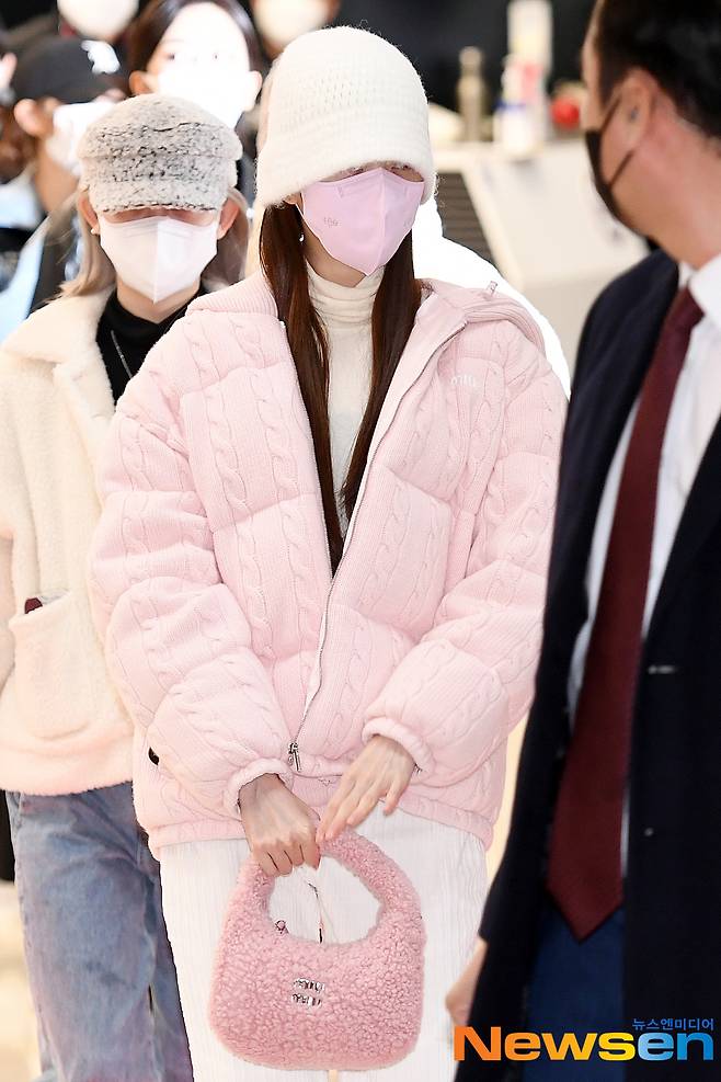 아이브(IVE) 멤버 유진, 가을, 원영, 리즈, 레이, 이서가 12월 5일 오후 서울 강서구 방화동 김포국제공항 국제선을 통해 일본에서의 일정을 마치고 일본 도쿄 하네다에서 입국하고 있다.