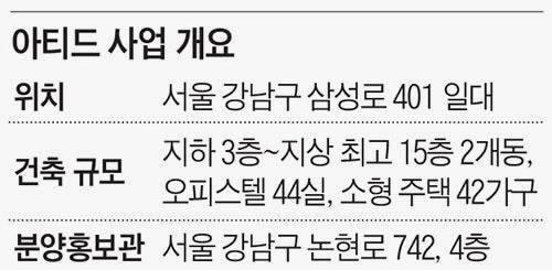 이를 감안해 대치동과 삼성동 일대에 고급 주거단지 개발도 활발하다. 대치동 ‘아티드’가 대표적이다. 지하 3층~지상 최고 15층 2개동에 오피스텔 44실, 소형주택 42가구로 구성하는 하이엔드 주거시설이다. 오피스텔은 현재 마무리 계약 중이고 이달 소형주택 분양에 나선다.