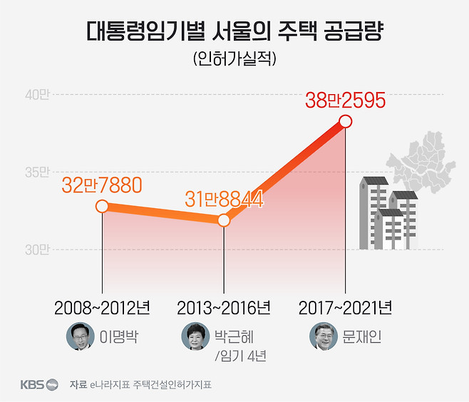 부족한 공급이 집값을 올렸다는 주장은 일부분만 맞는 이야기다. 예를들어 MB 정부 5년간 서울에는 32만가구가 공급(인허가 기준)됐다. 문재인 정부 5년간 38만 가구가 공급됐다. 그런데 왜 MB정부때는 집값이 계속 내렸을까. 왜 그때는 다수의 전문가들과 언론이 “주택 공급이 부족해서 큰일”이라고 매일 노래를 부르지 않았을까. 서울 시민들이 잠깐 지방에 살다 왔을까...(이건 대한민국 정부 통계다. 지금 e나라지표 주택건설인허가지표/주택건설인허가 실적을 들어가보면 누구나 확인할 수 있다. 그런데 우리 기자들은 정작 이런 지표보다는 직원수가 5명 정도인 무슨 무슨 부동산 업체 통계를 인용한다)