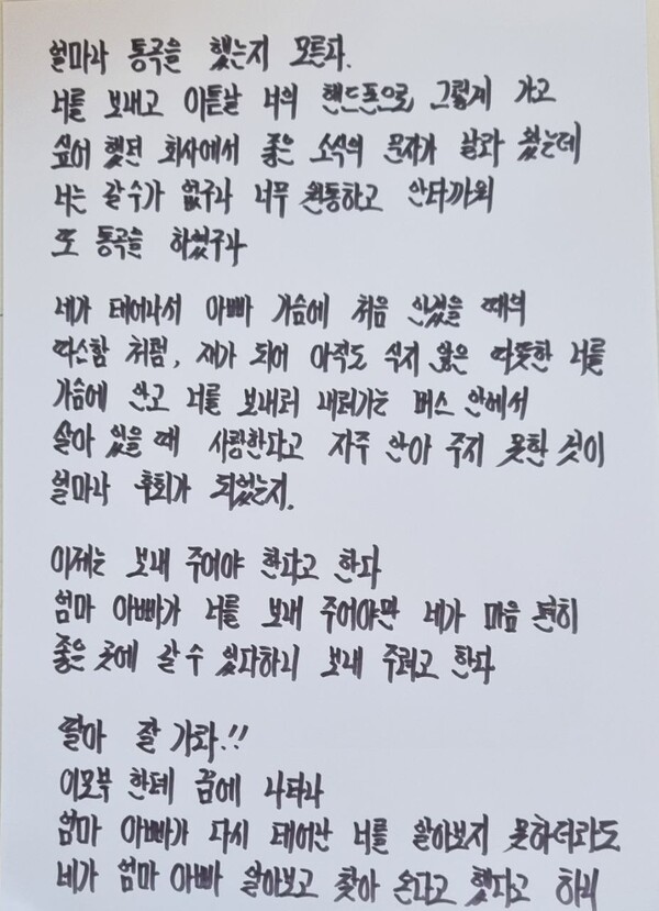 아래는 이상은씨 아버지가 외동딸에게 보낸 편지. 손으로 직접 쓴 편지 전문을 사진으로 공개한다.