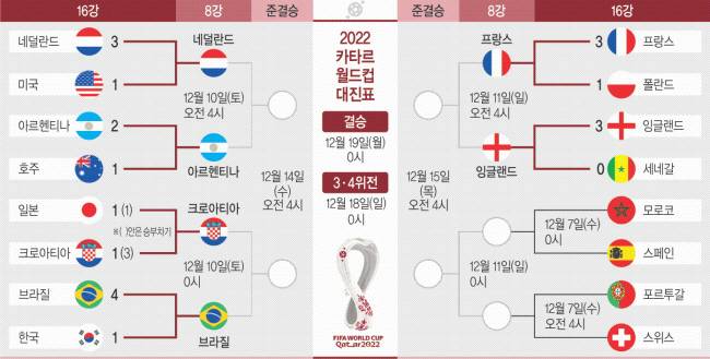 일본은 6일 오전(한국시간) 카타르 도하의 알자눕 스타디움에서 열린 크로아티아와 16강전에서 연장전까지 120분을 1-1로 비긴 후 승부차기에서 1-3으로 졌다. 일본은 사상 첫 8강 진출을 노렸으나 2002 한·일, 2010 남아프리카공화국, 2018 러시아월드컵에 이어 또다시 16강에서 무릎을 꿇었다. 아시아 국가 가운데 월드컵 8강에 오른 건 북한(1966년)과 한국(2002년)뿐이다.
