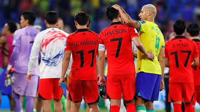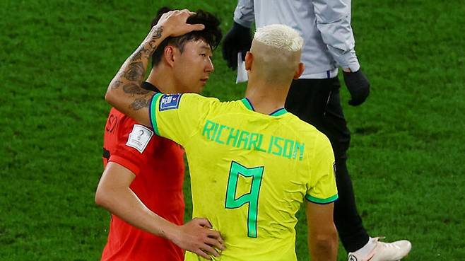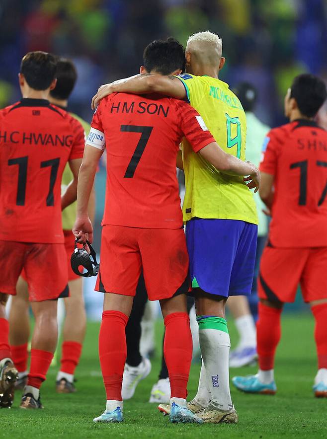 같은 소속팀 동료 한국의 손흥민(30·토트넘 홋스퍼)과 브라질의 히샬리송(25· 토트넘 홋스퍼)이 치열한 승부 직후 서로를 끌어안으며 돈독한 우정을 보여줬습니다.